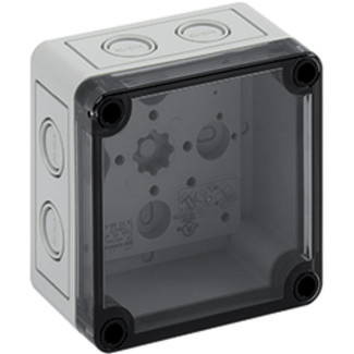 空箱體材質:  底:玻璃纖維加強聚碳酸酯,灰色-RAL 7035,蓋:聚碳酸酯,透明