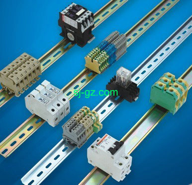DIN是德國工業標準,使用導軌是工業電氣元器件的一種安裝方式,安裝支持此標準的電氣元器件可方便地卡在導軌上而無需用螺絲固定,維護也很方便。常用導軌寬度是35mm的。目前很多的電氣元器件都有采用了這種標準,比如有PLC,斷路器,開關,接觸器等等。常用的導軌有魏德米勒的TS35×7.5,7.5mm厚,和TS 35*15,15MM厚。